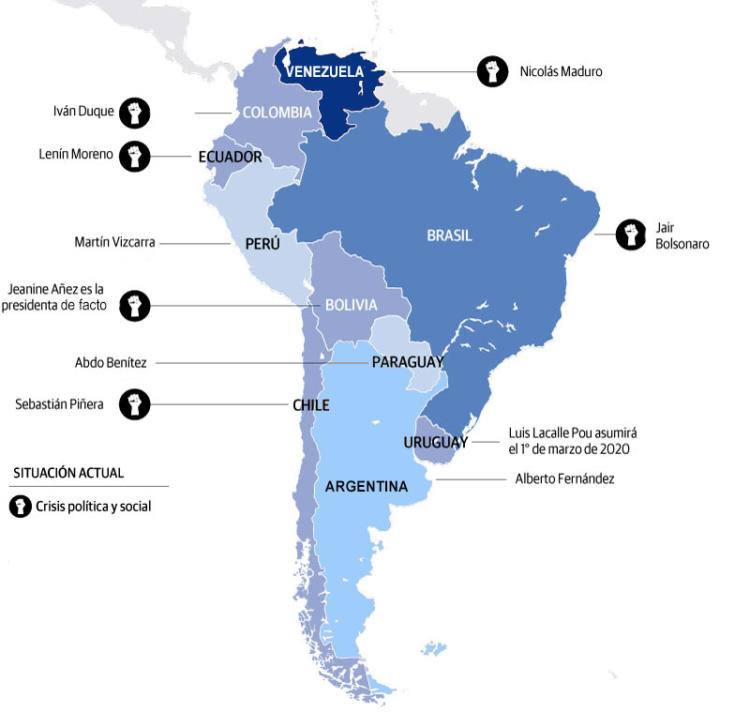 En tal caso se encuentra Perú, con parlamentarias previstas para el 26 de enero, luego de que en septiembre del 2019 el presidente Martín Vizcarra disolviera el Congreso de la República; y Chile, donde se ha convocado un plebiscito nacional para el 26 de abril con el objeto de consultar a la ciudadanía acerca de cómo gestar la Constitución que el pueblo ha reclamado en las calles.