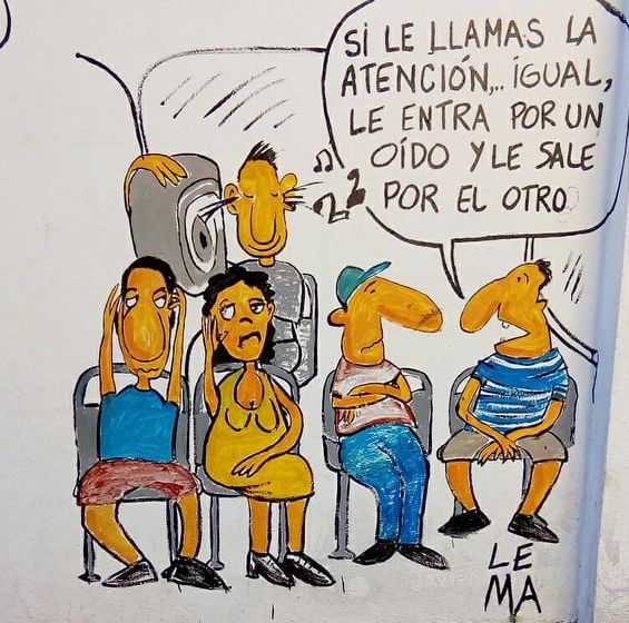 El tema de la contaminación sonora es muy espinoso. Aquí, en La Habana, en cualquier ómnibus, el chófer te pone un reguetón obsceno altísimo (…) y van generalmente más de tres bocinas portátiles sonando cada cual más alto y con cosas distintas.