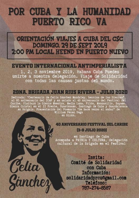 La edición 29 de la Brigada Juan Rius Rivera, iniciativa de hermandad que cada año viaja a la Mayor de las Antillas desafiando las leyes imperiales, está dedicada a Celia, cuya personalidad y asombrosa impronta son sinónimos de total compromiso con la patria, el pueblo y la Revolución, resaltó.