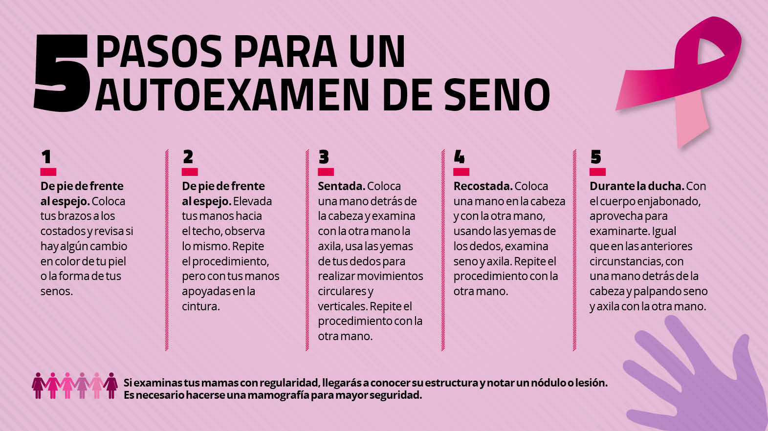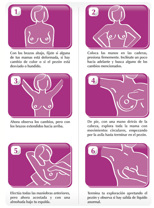 “Aquellas que tienen periodos menstruales examinarán sus mamas una semana después de finalizado el ciclo, y las que se encuentran en el climaterio o menopausia elegirán un día fijo al mes para hacerlo.