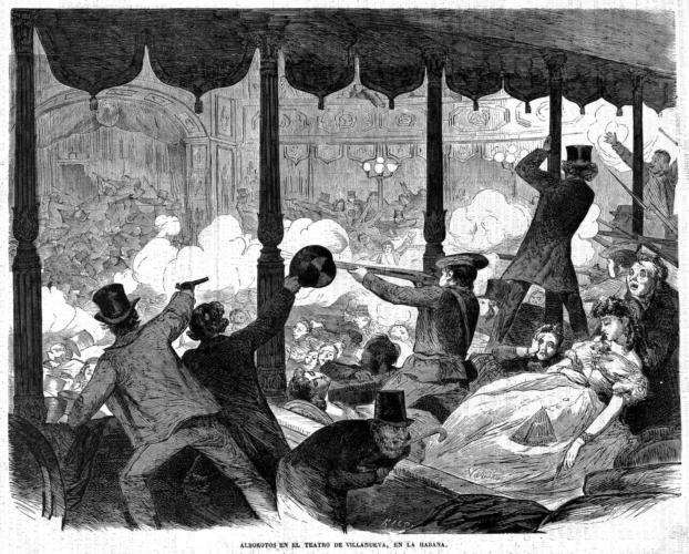 El 22 de enero de 1869, en el antiguo teatro Villanueva, de La Habana, el público contestó con vivas a Céspedes y a Cuba libre después de que un actor se refiriera a “la tierra que produce la caña” en una obra bufa que se representaba allí.