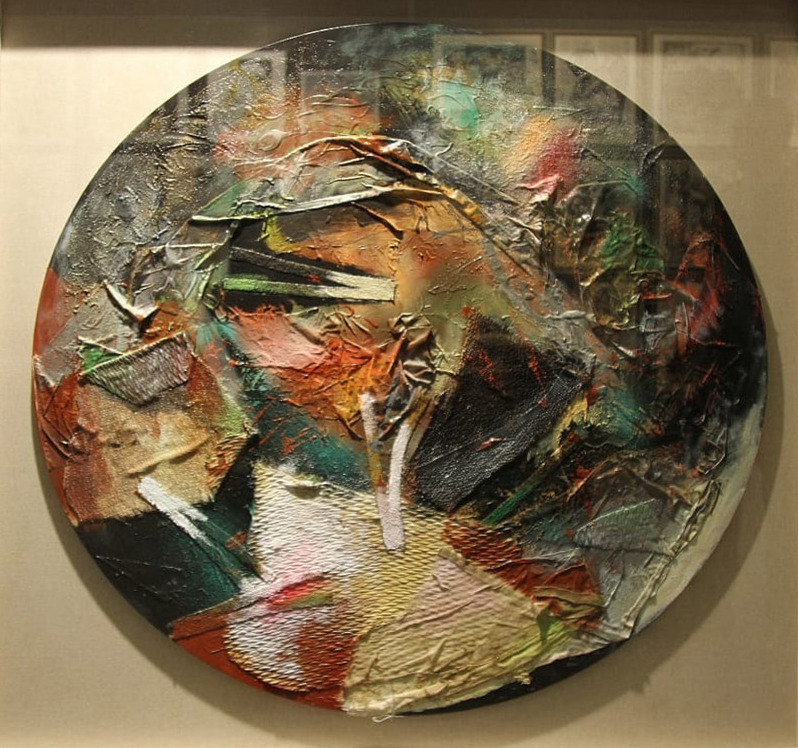 Dentro de esta imaginación, rica en contenidos, se halla Aura iridiscente, que pertenece también a Árbol libre de veneno. La cuidadosa porosidad en la superposición de materias y tonalidades surgiere violencia en el gesto pictórico y remite a contenidos que no están expresos en la forma. Son experiencias que, siendo estéticas, sobrepasan el goce y reflejan diferentes dimensiones de experimentación del cuerpo, los sentidos, la realidad y el lenguaje. Algo que ocurre, igualmente, en Intersección. Esta última, perteneciente a la serie White inside (2018-2019) con la que el artista participó en ferias como Art Marbella y Affordable Art Stockholm (2019).
