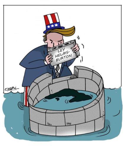 La ley Helms-Burton […] tiene como objetivo prohibir a todos los países extranjeros implicarse en el comercio internacional con Cuba; somete también a los ciudadanos extranjeros a restricciones de viaje y los expone a sanciones financieras en Estados Unidos”. [18]