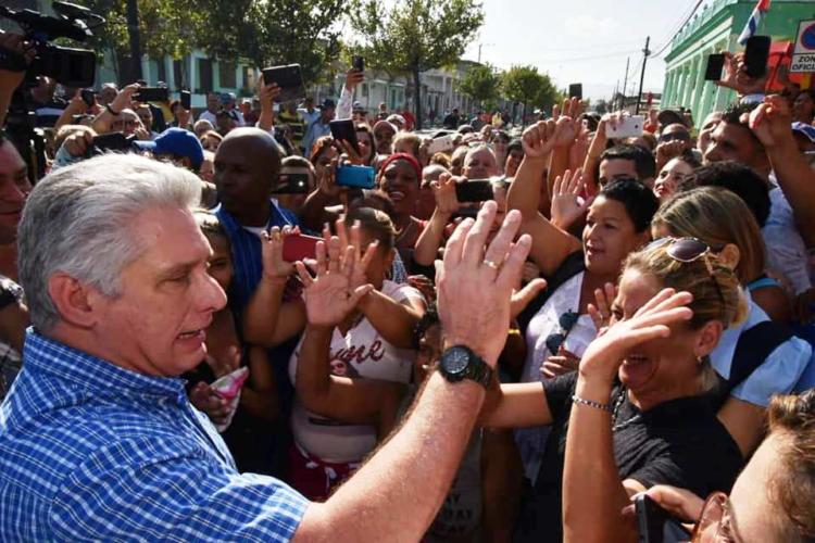 Saluda Miguel Díaz-Canel Bermúdez, Presidente de la República, a pobladores de la localidad de Cumanayagua