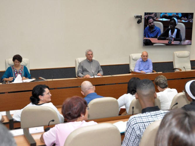 El Presidente de la República de Cuba, Miguel Díaz-Canel Bermúdez, sostuvo en la mañana de este lunes un encuentro con profesores de la Universidad de Ciencias Pedagógicas Enrique José Varona, de La Habana, y con expertos de otros universos.