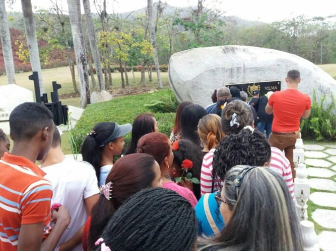 En ocasión de este 8 de marzo, y en nombre de los cubanos, una representación del pueblo santiaguero del municipio de Segundo Frente se dio cita en el Mausoleo a los mártires de ese frente rebelde para rendir tributo a la heroína de la Sierra y el llano, Vilma Espín Guillois, ante la piedra que atesora sus cenizas.