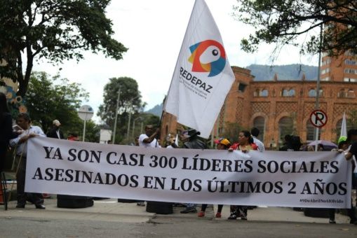 Desde que se firmó en 2016 el Acuerdo de Paz entre el gobierno de Juan Manuel Santos y las FARC, entre 300 a 500 activistas sociales, y más de 100 excombatientes de las FARC fueron muertos, según el Estado. Los defensores de los derechos humanos suman más de 600.