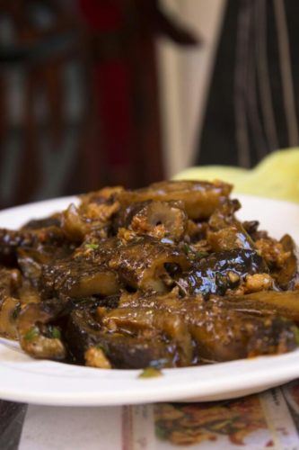 – Verduras salteadas. Los veganos y vegetarianos degustarán de este plato. A las muy conocidas col y acelga, se les suma el maní, lo cual aporta un exotismo calculado.