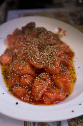 – Pepino de mar con picadillo. Es perfecto para los amantes de las texturas rugosas y gelatinosas. Estos animales marinos contienen diferentes tipos de proteínas y son considerados como manjares exóticos, exclusivos y hasta afrodisíacos en Asia.