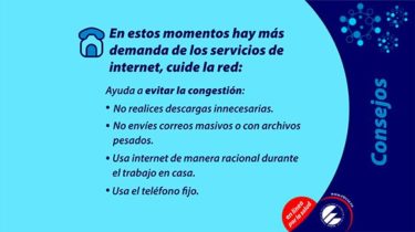 “En momentos como este, cuando no se puede duplicar la infraestructura existente de manera repentina, no se debe desestabilizar con más tráfico los servicios de la red, sino tolerar el tráfico ya existente, y a partir de esto mantener la vitalidad de los servicios”, apuntó.