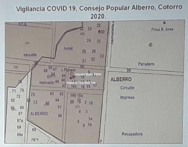 Mientras que, el Consejo Popular Alberro, con una población de casi 12 000 personas, posee dos casos positivos a la COVID 19 y sus límites geográficos son: al norte y al sur con la Avenida 93 y 99D del propio CP, al este con la calle 54 del Consejo Popular Lotería y al oeste con la calle 62 del CP Alberro.