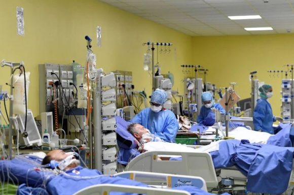 Miembros del personal médico en trajes de protección tratan a pacientes que padecen la enfermedad por coronavirus en una unidad de cuidados intensivos en el hospital San Raffaele en Milán, Italia, 27 de marzo de 2020. Foto: Flavio Lo Scalzo/ Reuters.