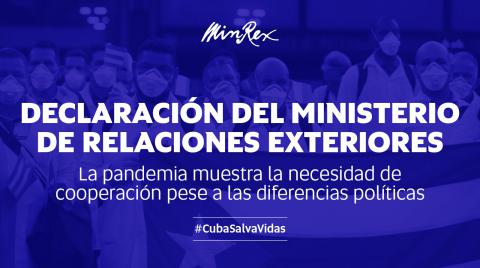 Cuba tiene el convencimiento de que el momento reclama cooperación y solidaridad. Sostiene que un esfuerzo internacional y políticamente desprejuiciado para desarrollar y compartir la investigación científica y para intercambiar las experiencias de diversos países en la labor preventiva, la protección de los más vulnerables y las prácticas de conducta social, ayudará a acortar la duración de la pandemia y a reducir el ritmo de las pérdidas de vidas. Cree firmemente que el papel y el liderazgo de las Naciones Unidas y de la Organización Mundial de la Salud son imprescindibles.