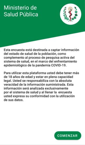 De lo que se trata es de una encuesta epidemiológica de salud en la que cada cubano podrá, entrando sus datos generales, destapar o no alertas sobre su estado físico, lo cual generará una visita del médico en caso de fiebre, tos u otro síntoma relacionado con el nuevo coronavirus.