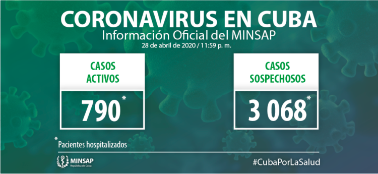 Al cierre del día de ayer, 28 de abril, se encuentran ingresados en hospitales para vigilancia clínico epidemiológica 3 mil 68 pacientes. Otras 6 mil 839 personas se vigilan en sus hogares, desde la Atención Primaria de Salud.