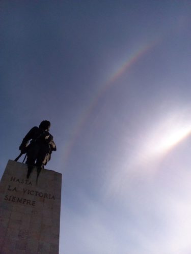 La Plaza de las grandes concentraciones en Villa Clara, esa dedicada a Comandante Ernesto Guevara, volvió a sentir el fervor patrio. Desde ese recinto se conmemoró el Primero de Mayo en esta provincia, matizado además por un arcoiris que la naturaleza dejó apreciar al terminar la marcha de la Internacional, como simbólica alusión a la esperanza de vencer la pandemia que nos recogió en las casas e impidió marchar por las avenidas.