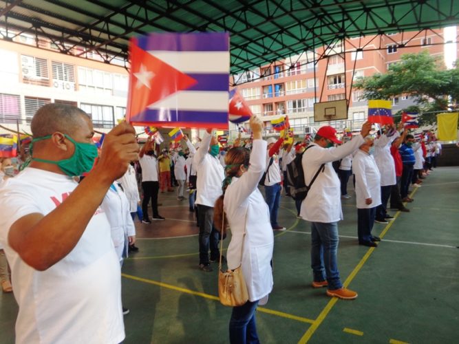 Este Primero de Mayo, los más de 22 mil colaboradores cubanos en Venezuela convirtieron en plazas las calles de cerros y de otras comunidades, donde residen las personas más vulnerables, y celebraron el Día Internacional de los Trabajadores con sentido del momento histórico que vive la humanidad frente a la COVID-17.
