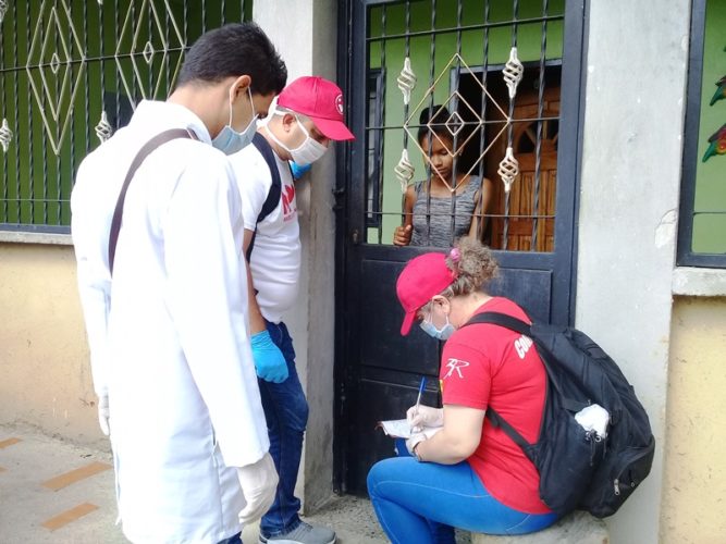 Después de corear las ardientes estrofas de la Internacional salieron dispuestos a desafiar  las poderosas fuerzas del Sars-CoV-2, y a defender los valores en los que  creen al precio de cualquier sacrificio y de los riesgos que la situación impone, “porque están en juego la salud y la vida de mucha gente”, me dijo Damar Castro Trougb, uno de los integrantes de la Misión Deportiva que comparte con sus compatriotas de Salud las pesquisas casa a casa en las comunidades.
