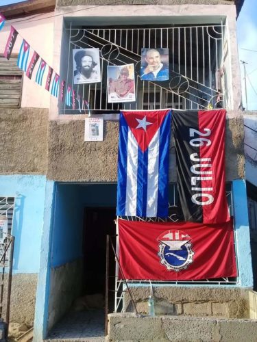 Aunque mucho antes de la jornada las cuadras ya vestían sus banderas, pendones y carteles, la notas del Himno de Bayamo y La Internacional ocuparon las cuadras.