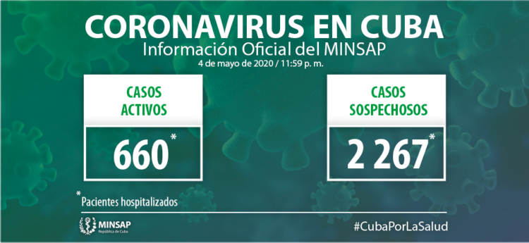 Al cierre del día de ayer, 4 de mayo, se encuentran ingresados en hospitales para vigilancia clínico epidemiológica 2 mil 267 pacientes. Otras 6 mil 47 personas se vigilan en sus hogares, desde la Atención Primaria de Salud.