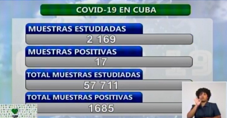 - Ciudadana cubana de 70 años de edad, residente en el municipio Plaza de la Revolución, provincia La Habana. Contacto de caso confirmado anteriormente. Se mantiene en vigilancia 18 contactos.