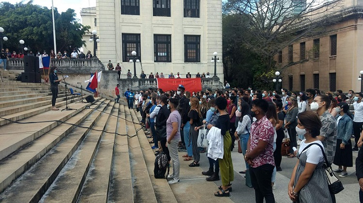 Al hablarles a los estudiantes y jóvenes, Yenisleidys Vázquez García, primera secretaria del Comité Municipal de la Unión de Jóvenes Comunistas en Cienfuegos, expresó que “siempre estaremos en la primera trinchera, esta vez, retando a la pandemia desde la producción, los servicios, las comunidades y el barrio”.