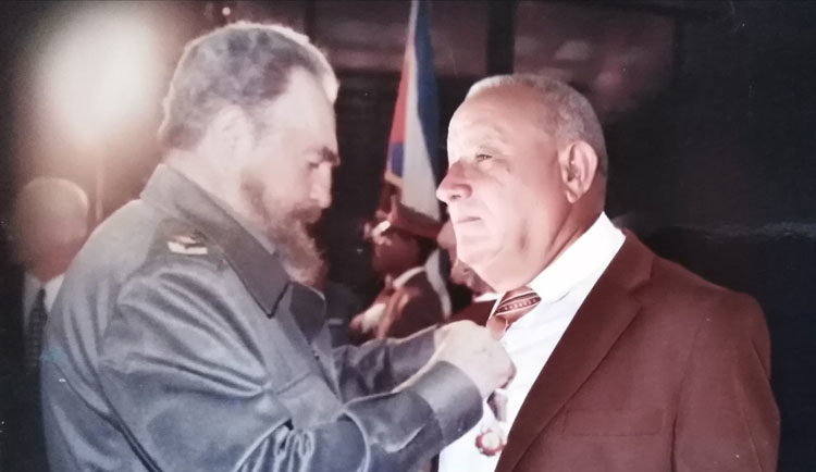 “El más feliz aquel día de 1997 cuando el Comandante en Jefe colocó en mi pecho la estrella de Héroe del Trabajo. Fidel me dijo: ʽguajiro, sigue guapeandoʼ, le respondí que hasta que tuviera salud, aquí estoy al pie del surco, y eso no me lo prohíbe ni la COVID-19”.