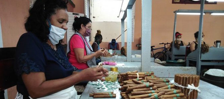 A partir de los dividendos de ese equipo vanguardista, Rogelio compara las etapas antes y durante la presencia del Coronavirus: «Al cierre del primer cuatrimestre cumplimos al 75 % la producción de tabaco torcido para el consumo nacional, y en mayo se comporta al 125 %, es decir, en el orden de los 7 mil 400 habanos cada día, y eso que estamos trabajando con 29 tabaqueros, de un total de 54.