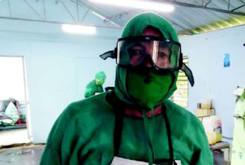 Noedys Betancourt Calzado también ayuda en el dispensario. Él era enfermero en la sala de cirugía y desde que comenzaron a atenderse pacientes positivos es mensajero: traslada medicamentos y las soluciones cloradas hasta la zona roja.