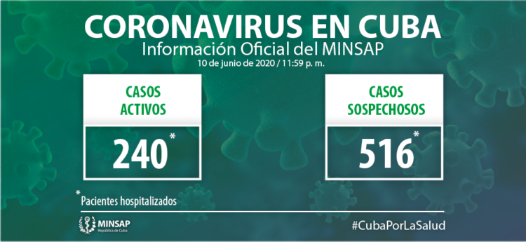 Al cierre del día de ayer, 10 de junio, se encuentran ingresados en hospitales para vigilancia clínica epidemiológica 516 pacientes. Otras 423 personas se vigilan en sus hogares, desde la Atención Primaria de Salud.