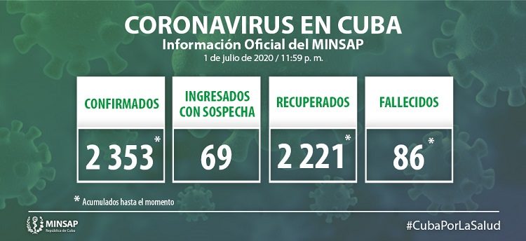 Al cierre del día de ayer, 1 de julio, se confirmaron 5 nuevos casos, para un acumulado de 2 mil 353 en el país.
