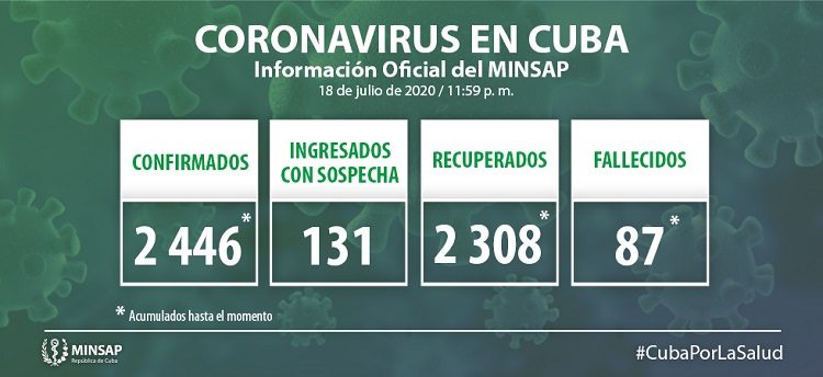 Se mantienen 49 casos activos, la cifra más bajas de las últimas semanas. Se reportan 2 446 casos en Cuba. Ayer se dieron cuatro altas, por lo que 2 308 se encuentran recuperadas, de alta clínica o epidemiológica.