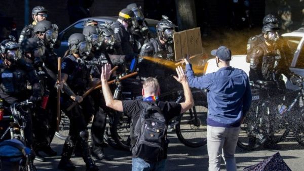Una de las manifestaciones más intensas de este sábado tuvo lugar en Seattle, Washington, donde los enfrentamientos entre los participantes y las fuerzas del orden dejaron un rastro de ventanas rotas y personas que sufrían las molestias del gas pimienta en sus ojos.