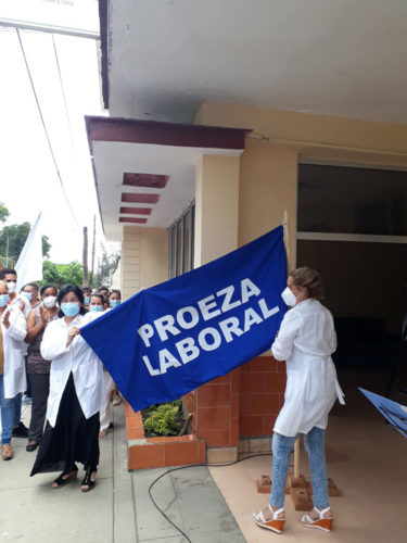 En actos solemnes en los que estuvo presente Yudi Rodríguez Hernández, presidenta del Consejo de Defensa de la Provincia, y Julio Morales Verea, secretario general de la CTC en Villa Clara; así como representantes de los sindicatos de la salud, transporte y Civiles de la Defensa se les entregó el estandarte.