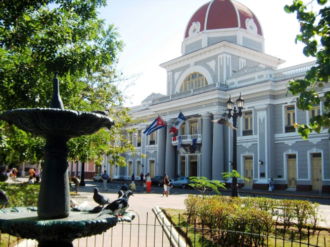 Una de las más emblemáticas edificaciones de la ciudad de Cienfuegos, el Palacio de Gobierno, recibe una restauración que le devolverá completamente su esplendor, fundamentalmente a su enorme cúpula.