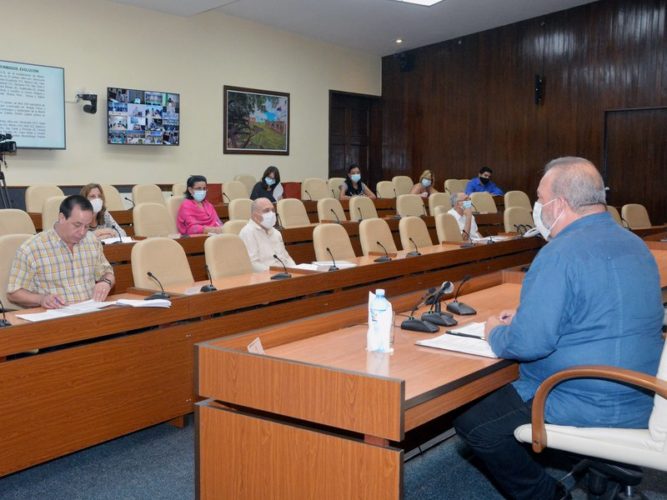 Este lunes, cuando en Cuba se reportaban activos 208 pacientes diagnosticados con la COVID-19, 24 de ellos confirmados durante la más reciente jornada, y permanecían ingresados para atención y vigilancia de la enfermedad 3 187 personas, el grupo temporal de trabajo para la prevención y control del nuevo coronavirus, dirigido por el Primer Ministro, Manuel Marrero Cruz, continuó el examen de la situación epidemiológica del país.