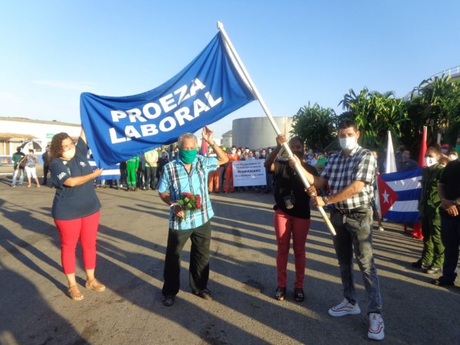El colectivo de la Empresa de Refinería de Petróleo “Ñico López” de La Habana recibió la bandera Proeza Laboral que otorga la Central de Trabajadores de Cuba a centros, por un hecho productivo relevante de repercusión en la economía y en la sociedad.