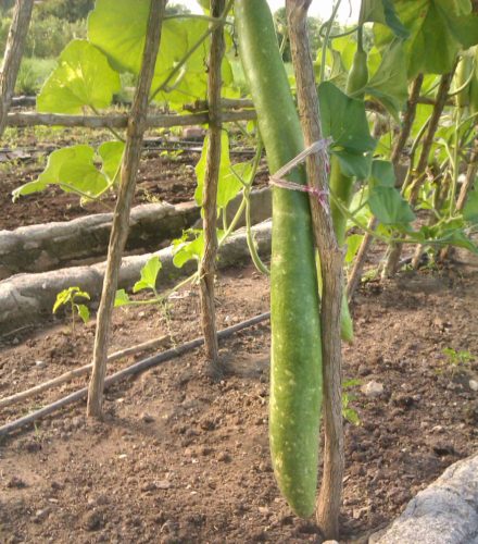 Con certeza Onel Batista Ávila, el administrador, no conoce el nombre de la variedad. Más una búsqueda en Internet me lleva a decir que no hay nada más parecido a estos ejemplares tuneros que el pepino largo de China. Según él, algunos clientes de Guinea, África, que lo visitaron, le dijeron que allá habían visto frutos como estos.