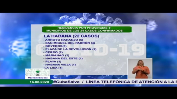- Ciudadana cubana de 24 años de edad, residente en el municipio Arroyo Naranjo, provincia La Habana. Contacto de caso confirmado anteriormente. Se mantienen en vigilancia 20 contactos.