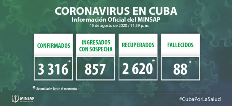 En Mayor de las Antillas se han confirmados 3 316 casos desde el comienzo de la pandemia en el territorio nacional el pasado 11 de marzo, y 1 620 pacientes están recuperados.