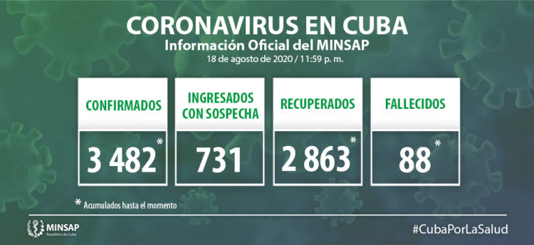 Del total informado 59 estaban asintomáticos en el momento del diagnóstico, con lo que se acumulan 2 012 desde marzo, el 57.8% de todos los confirmados.