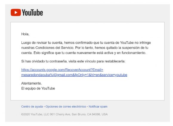 En el día de ayer Google bloqueó las cuentas de Granma, Mesa Redonda y Cubavisión Internacional, lo que privó a estos medios del acceso a todos los servicios y aplicaciones de esa empresa, incluido Youtube. El apagón se produce pocas horas antes de que se transmitiera un panel con los científicos que han producido el candidato de vacuna cubana contra la Covid, una noticia de primera categoría que suscitó enorme interés en Cuba y en el mundo.