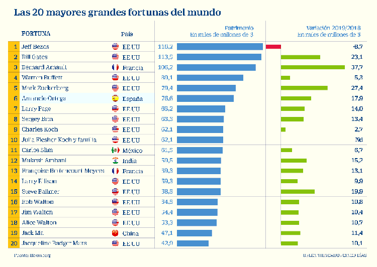 Durante los meses que la población del planeta ha sufrido por la presencia del nuevo coronavirus y la COVID-19, las 500 personas más adineradas han hecho crecer sus fortunas en 871 mil millones de dólares. La semana de mayor ingreso fue de 209 mil millones.