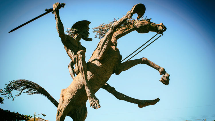 El personaje del Quijote también ha sido fuente de inspiración para infinidad de creadores cubanos de todas las expresiones del arte y la literatura. De manera inmediata el público se identifica con él en las numerosas esculturas emplazadas por prestigiosos artífices en distintos lugares de la capital, como la titulada El Quijote de América, de Sergio Martínez Sopeña, ubicada en J y 23 (Vedado), y la estatua de Sancho Panza, de Leo D´Lázaro, en el parque de Obispo y Aguacate en La Habana Vieja, lugares por los que transitan cientos de personas cada día.