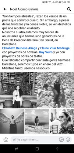 Otro de los ganadores de la referida Beca de creación literaria Can Serrat expresó en las redes su alegría de este modo: