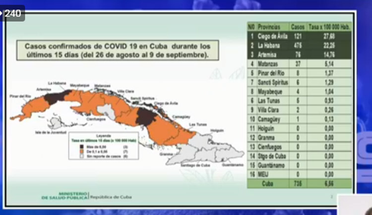 A Ciego de Ávila corresponde la mayor tasa de incidencia por provincia, que está en 27,68 por cada cien mil habitantes, seguida de La Habana (22,25) y Artemisa (14,76).