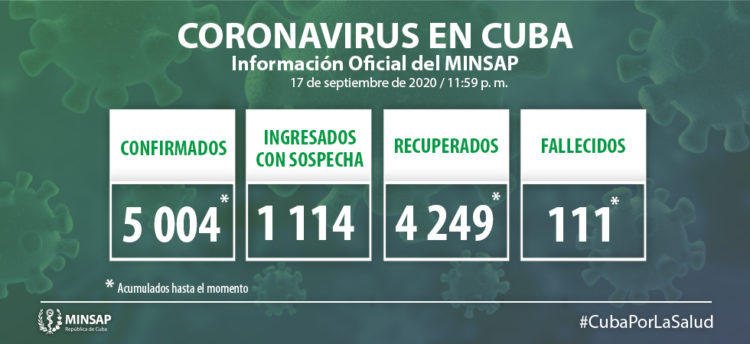 Con los 71 pacientes que fueron diagnosticados ayer como positivos al SARS-Cov-2, entre más de 8 mil 400 muestras, Cuba arriba a la cantidad de 5 mil cuatro personas contagiadas desde el inicio de la epidemia hace más de seis meses.