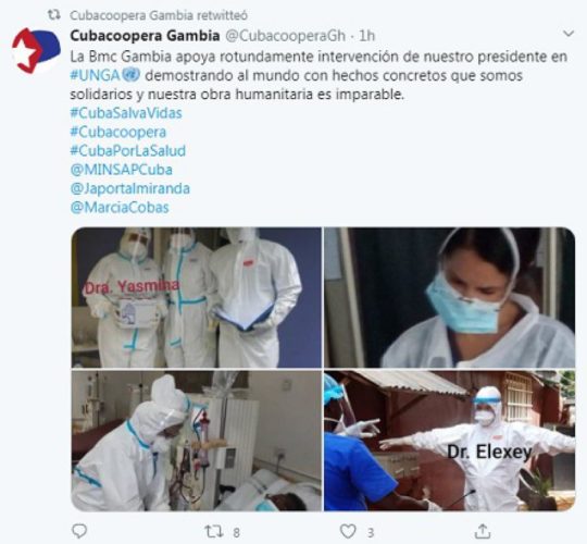 La Brigada Médica Cubana (BMC) en Gambia respaldó rotundamente la intervención de su presidente Miguel Díaz-Canel en el segmento de alto nivel del 75 periodo de sesiones de la Asamblea General de las Naciones Unidas (AGNU).