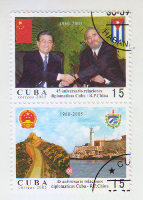 Emisión por motivo del 45 Aniversario de las relaciones Diplomáticas Cuba-China.