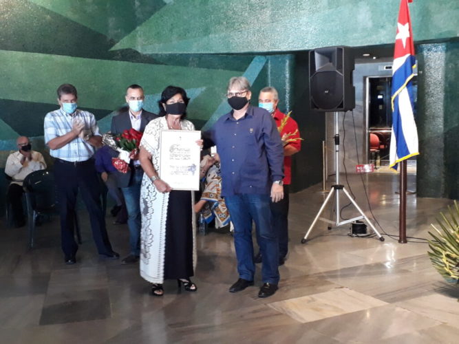 A continuación, se hizo entrega de reconocimientos a la Televisión por parte de Víctor Gaute, Jefe del Departamento Ideológico del Comité Central del PCC; de Alfonso Noya, Presidente del ICRT; de Ricardo Ronquillo, Presidente de la UPEC; de Ulises Guilarte de Nascimento, Secretario General de la CTC; del Ministerio de las Fuerzas Armadas Revolucionarias y del Sindicato Nacional de Trabajadores de la Cultura.